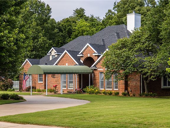 Accepting Back-up Offers! Fantastic estate home with WOW factor! Home is in Timber Ridge Sub. on 0.9 acre lot & features multiple living areas, 5 BR, 2.5 BA & garage space for 7 cars (one on a lift). Living rm has built-in shelving/fireplace & is open to formal dining. Eat-in kitchen features custom cabinets w/pull-out shelves & built-in desk. Heated sunroom provides tranquil views of backyard. Huge primary suite has double sided fireplace & en suite bath with tub/large walk-in shower. Hidden basement is perfect storm shelter/safe room or a future wine cellar. Upstairs has bonus rm with murphy bed & bedroom/theater rm with large screen & projector. Additional features include whole house Generac, composite deck with ramp, covered walkway, handicap accessible features, irrigation w/drip system & climate-controlled detached garage. Home is near Don Tyson Pkwy which provides easy access to I-49, 71B, Tyson Corp & Children's Hospital. Seller providing 1 year American Home Shield warranty. New roof & gutter guards 2022.
