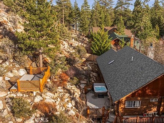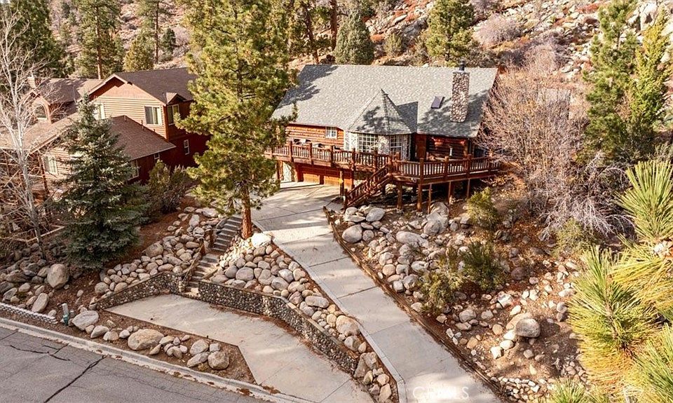 Welcome to this warm and inviting full-log home in Eagle Mountain Estates, located in the desirable Fox Farm area of Big Bear Lake. This single-level cabin features 3 bedrooms, 2 bathrooms, a 2-car attached garage, and underground utilities. Recent upgrades include a new roof, tankless water heater, new furnace, and a new hot tub—all ready for comfortable mountain living. Inside, you’ll enjoy an open floor plan with natural wood flooring, vaulted T&G ceilings, and a dining area that looks out over the trees and mountain views. There’s also a separate laundry room with a sink for added convenience. Step outside to an almost wrap-around Trex deck, plus an additional back deck perfect for entertaining. Under the home, you’ll find a clean, easily accessible build-up area for extra storage. The home comes furnished and even includes a snow blower, making it truly move-in-ready. A great option as a second home or rental in the mountains.