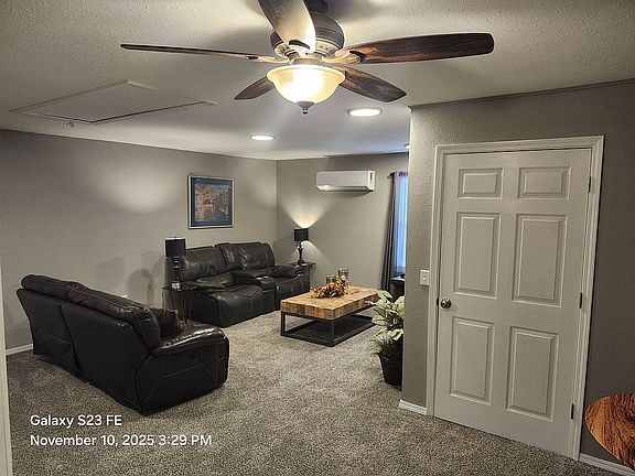 [ ] On 1.27 acres on a Cul de sac in a nice neighborhood. Nice size 3 bedrooms and 2 baths with 2 living areas or one could be used as a 4th bedroom, with its’ own outdoor access front and back to outdoor living space. Gas and wood burning fireplace. Tankless hot water heater. Central Gas heat and Central Air. Covered inground storm shelter. Partially fenced back yard. Large Covered outdoor living space. Included with the house is a Hot Tub, Wicker Patio Furniture, and a Natural Gas Webber Stainless Steel Grill. 2 Car Garage, 2 Car carport, half circle drive with wide entrances for RV and Trailer accessibility. 30x5ox12 metal insulated bldg. with concrete floor and a 15x50 lean-to on back side. Plenty of room for RV and multiple trailer parking. 10x15 insulated bldg. with concrete floor that would make a nice She Shed. 8x12 outdoor bldg. Great County Living close to town and only minutes away from Shawnee. No HOA. Approximately 1809 sq. ft. Offering a one year extended warranty. Private showing with a pre-approval letter.