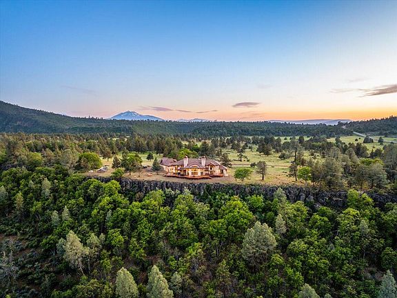 Passing through a custom lava rock gated entry to the impressive improvements. Here is an example of exquisite design and excellent craftmanship achieving the perfect blend, creating a masterpiece. This 5,230-sf, 4 bedroom, 4.5 bath luxury home is a one-of-a-kind Spanish Mission discovery and a delight to see. Encompassing 67 acres of untouched land, the home sits on a majestic lava rock bluff, capturing the sunrise and panoramic views of beautiful Fall River Valley and manicured greens of a nearby golf course. Entering the home and stepping into the great room will take your breath away, not only is the space itself spectacular, but the wall of windows capturing the views puts it on a new level. A custom lava rock fireplace encompasses one wall. The imported handmade Mexican tile floors flow throughout the home. Two glass doors open to the expansive back deck with 2nd custom lava rock fireplace and BBQ area. What a wonderful space to relax and enjoy the view. The great room opens to a dream kitchen, charming breakfast nook and butler pantry. Also, on the main floor you will find two additional bedrooms with ensuite baths. An office/den and large laundry. Ascending to the second level on an open stairway brings you to a balcony overlooking great room. This level features a well-appointed guest suite along with the owner's suite. The detached 3 car finished garage has a wonderful guest apartment above. Unique lava rock pump house and storage room is the final building on the property, which is mainly level, other than the fantastic rock bluff. This is an amazing opportunity to own this spectacular home and be the first to warm it with family and friends.