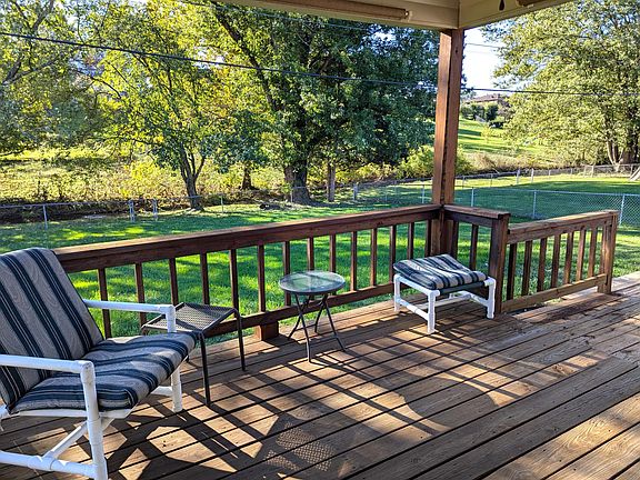 Wood-burning fireplaceIndividual ceiling fansLaminate flooringOne-level livingOversized eat-in kitchenLaundry roomCovered deck