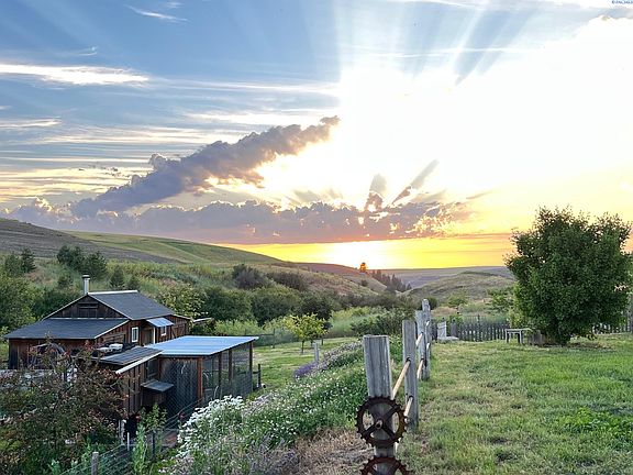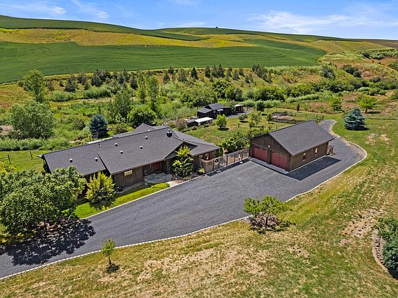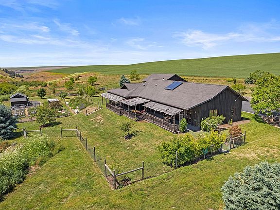 MLS# 276798 Welcome to Palouse Creekside Haven... a true hidden gem in the heart of Eastern Washington. Situated on 92 beautiful acres northwest of Pullman, Palouse Creekside Haven offers a unique way of living, rural but connected, sustainable with modern amenities. The main house and sprawling deck is perched over a natural springwater creek offering frequent glimpses of the wildlife drawn to it. At 2200 square feet, the main house is full of warmth and charm, with reclaimed wood floors and custom cabinetry, three bedrooms and three full bathrooms. The primary suite offers a spacious dressing room, ensuite bathroom, and easy access to the deck and outdoor living space. A gorgeous custom kitchen features huge windows with views as well as a dream pantry. An incredible mudroom includes storage, two exterior access doors, and a full bathroom. No detail was overlooked in the thoughtful design and construction of this custom home. Foam insulated walls maintain comfortable temperatures year-round while significantly reducing reliance on energy sources. Solar tube lighting throughout the home offers ample natural light, cutting the need for electricity during daylight hours. Solar panels supplement the electricity needed to power the entire property. Property is equipped with two direct fiber optic internet nodes, with high speed internet in the house, guest house, and shop.The possibilities for this modern homestead are endless - in addition to the main house, the property features an artist's studio, a detached one bedroom guest house with full kitchen, large shop, an expansive garden, chicken coop, and multiple outbuildings, including a four-car 36' x 26' main garage. Thoughtfulness and a dedication to sustaining the land for generations to come is evident at every corner of Palouse Creekside Haven.
