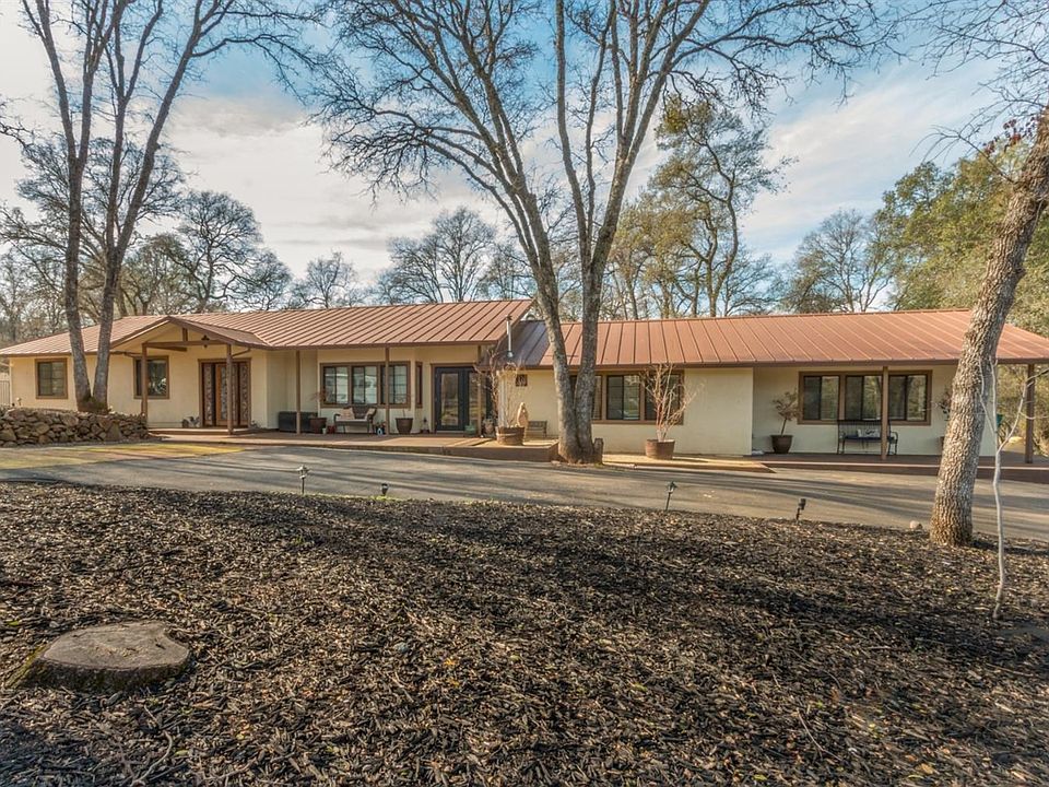 Beautifully remodeled single story home on 5 acres close to Hwy 50 & Ponderosa High. Built in pebble tech pool, circular driveway, private setting with seasonal stream & manicured oak trees. Perfect setup for animals with new 30'x50' shop/barn & gravel road access, dog run, horse shelter, 2 stall horse barn, wash rack, fully fenced, 2 separate large pastures, severaloutbuildings for hay & equipment storage. Artesian well on property, potential for vineyard, orchard/agriculture. Plenty of room for trailer/RV storage. Stucco exterior, dual pane windows, tankless water heater & metal roof. Interior features hand scraped hard wood & tile flooring.Chef's kitchen with gas cook top, granite counters, wine fridge, double ovens, plenty of cabinets & work space. Spacious family, living & dining rooms make this house perfect for entertaining &/or a large family. Cozy pellet stove in family room. All bathrooms upgraded with tile &/or stone. Upgraded cabinets & crown moulding throughout.