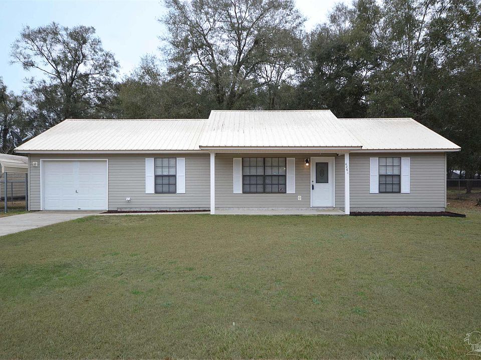 Woe Is Me! That's what you'll be saying if you wait too long to call about this adorable 3/2, 1215 SF open floor-plan style home on a HALF ACRE, METAL ROOF, with a new stove/oven, new vent hood, and fresh paint and new laminate flooring! This charmer features wood-look laminate flooring, wall to wall carpet and a Great Room with a large, double picture window that allows for soul-refreshing sunlight to fill the home. The Great Room opens into the Dining area and Kitchen, which includes stove/oven, dishwasher, built-in-microwave, pantry, and plenty of gorgeous cabinets and oodles of counter-top workspace for the chef in you. The dining area even includes a window that overlooks the covered patio and backyard. In fact, the living area flows in perfect harmony out the back-sliding glass door and onto the open covered back porch, creating an entertainment lover's dream and the perfect spot for a lazy summer BBQ or those Holiday get-togethers w/family and friends. The split Master Suite features a walk-in closet and an ensuite full bath. Whether you're starting life's journey, have a growing family, or are down-sizing, this charming property is the perfect place to call home. Extras include an inside laundry WITH washer and dryer, and a private backyard that makes the perfect spot for a lifetime of lazy, Sunday afternoon naps in the hammock! Call today and schedule an appointment to see YOUR new home!
