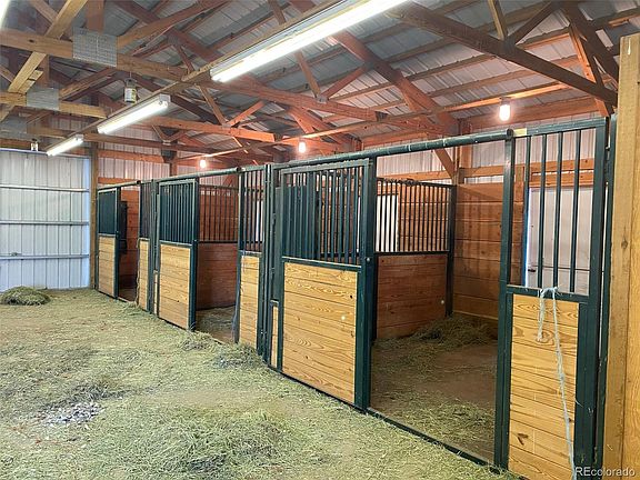 Spectacular Horse property with a huge, over 6000 sq ft finished ranch style home located on a 7.35 acre lot on a quiet cul-de-sac. Everything you need is already here including a 3 stall stable/barn inside and outside, tack room, hay, water and corral. There is also a large shed with garage door, water heater, utility sink and lots of lighting and outlets, great for large equipment, toys or amazing workshop. You'll love staying at home here where there is plenty of room for home office, and home schooling. There are 4 bedrooms up and 2 more in the walk-out basement and a total of 5 baths as well. This solid, brick ranch has new exterior paint as well as the main floor living area. The master bedroom has a door to the back yard, a fireplace, five piece bath and a huge walk-in closet. The basement is fully finished with 9' ceilings with rec room, family room with fireplace, media room and a huge wet bar. This could easily be a multi-generational home. On the main level the kitchen is open to the family room with views of the mountains and your horses. The master bedroom has a door leading to the stables, fireplace, 5-piece bath and a huge walk-in closet. The attached garage has 4 oversized (long) stalls. This home offers more room and land than any of the comparable horse property homes in the neighborhood. Ready to move in and make your own.
