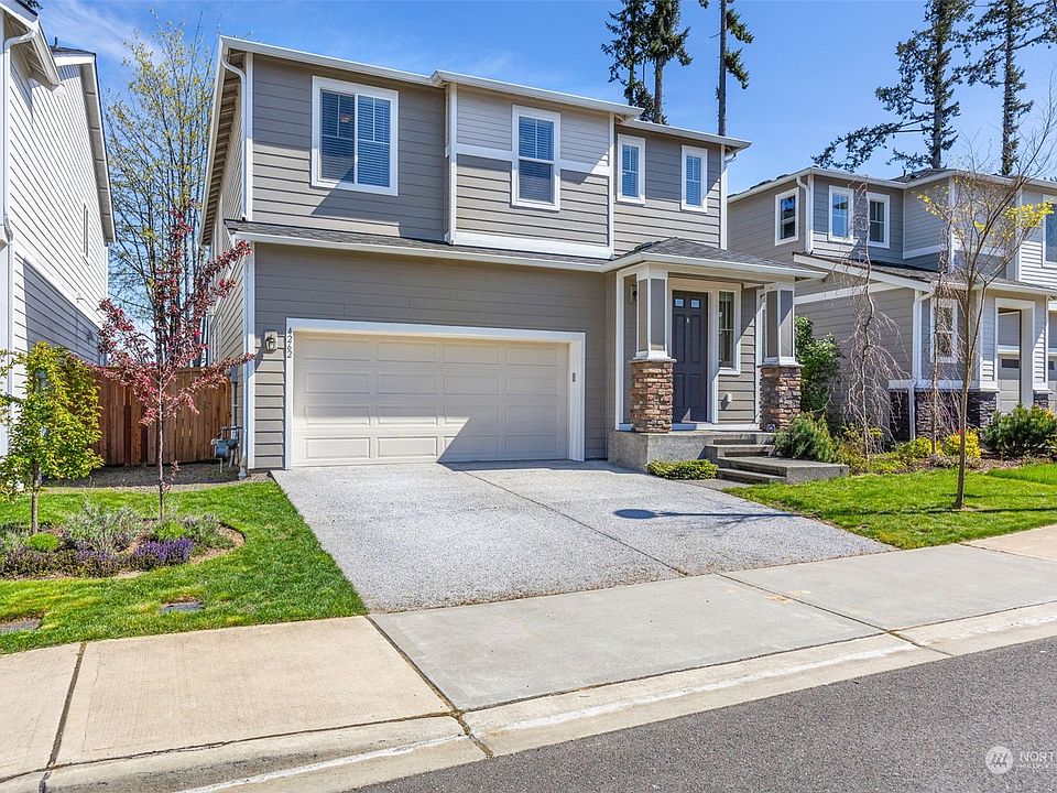 Come and enjoy this NW Contemporary home. Situated in a prized SK neighborhood. You'll enjoy coming home to this natural light filled home w/ tall ceilings & high end finishes. The main floor features the primary bedroom with full bath, an open great room with a fireplace and a kitchen with Gourmet Package upgrade that includes a center island with breakfast bar, walk-in pantry and adjacent dining area. Stainless steel appliances, double oven, gas range... Upstairs, a laundry, a large loft and 3 bedrooms, including a lavish master suite with a private bath & walk-in closet. Lots of upgrades, extra windows, extra lights, blinds on all windows. Close in to ferries, local medical centers and shopping areas. Must see!