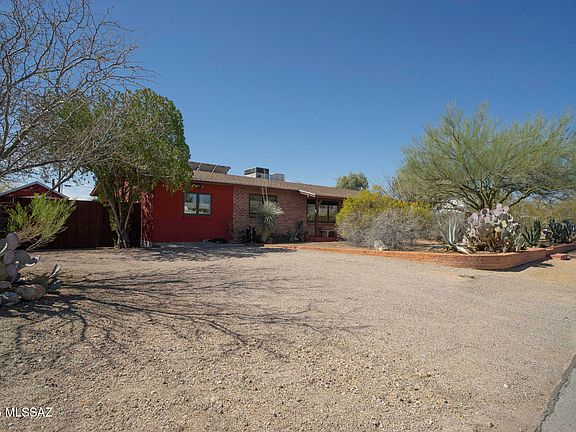 REPAIRS AND UPGRADES DONE FOR EASY MOVE-IN! A brick path invites you through the desert plantings into this charming mid-century brick home built in 1952 and centrally located in Tucson's Peter Howell neighborhood. This well-maintained 1784 sq ft residence offers three bedrooms, two bathrooms, and a versatile den, perfect for work or relaxation. Natural light fills the living area through dual-pane windows, enhancing a bright and open feel. The kitchen serves as the heart of the home featuring modern appliances, granite countertops, and stylish custom cabinetry. Step outside to an expansive backyard featuring a generous covered patio, workshop, shed, and multiple mature trees, with plenty of space to expand your outdoor vision. Includes owned solar and water-harvesting cisterns.