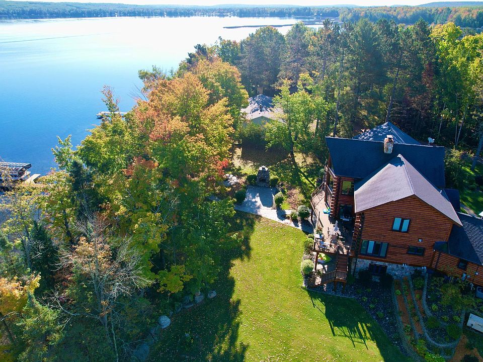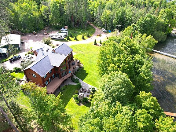 EXQUISITE LAKE METONGA LOG HOME – A TRUE NORTHWOODS RETREAT! This stunning 6,000 sq ft full-log home offers 135’ of pristine sandy frontage on Lake Metonga and sits on over an acre of beautifully landscaped grounds. Privately located on a quiet drive, the 4 BR, 4 BA home includes a heated 3-car garage, 30x50’ heated pole building, outdoor kitchen, hot tub, stamped concrete walkways, and an 850 sq ft wrap-around deck. Inside, enjoy a breathtaking 38’ stone fireplace, soaring 10’ ceilings, western pine log staircase, and Pella windows. The gourmet kitchen features granite and quartz countertops, a new specialty fridge, and a 48” 8-burner gas stove. Luxurious amenities include walk-in cedar closets, whirlpool tub, tile shower, wet bar, pool table, office with custom cabinetry, and a solid concrete coded safe. This extraordinary home also includes a 15KW generator, in-ground sprinkler, dog kennel, outdoor wood stove, and central vac system. A rare lakeside gem—schedule your showing today!