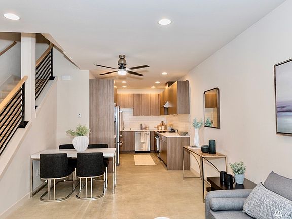 Admiral District townhouse with 91 walk score and direct bus line to downtown. Just steps from restaurants, coffee, wine tasting and more - a city-lover's dream. Comfortable living with a modern twist. Concrete floors, quartz counter tops, brand new refrigerator and stainless steel KitchenAid appliances staying as well as brand new W/D. With a 500 sq. ft. private roof-top deck, enjoy bbqs and Pacific Mountain views on a clear day Seattle day! Designated parking spot located in alley behind home.