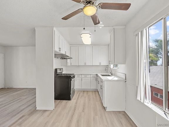 Located on the top floor, this 1BR/1BA condo has updated counters, kitchen cabinets, new flooring and new paint (seller will give a $1000 credit for a new refrigerator). Wilson Court is located between Normal Heights and North Park, just minutes away from places like Blind Lady Ale House, Soda Bar and the recently renovated Lafayette Hotel. The assigned parking space is directly next to the main entrance and the HOA dues are only $243.55/mo! This condo is move in ready!