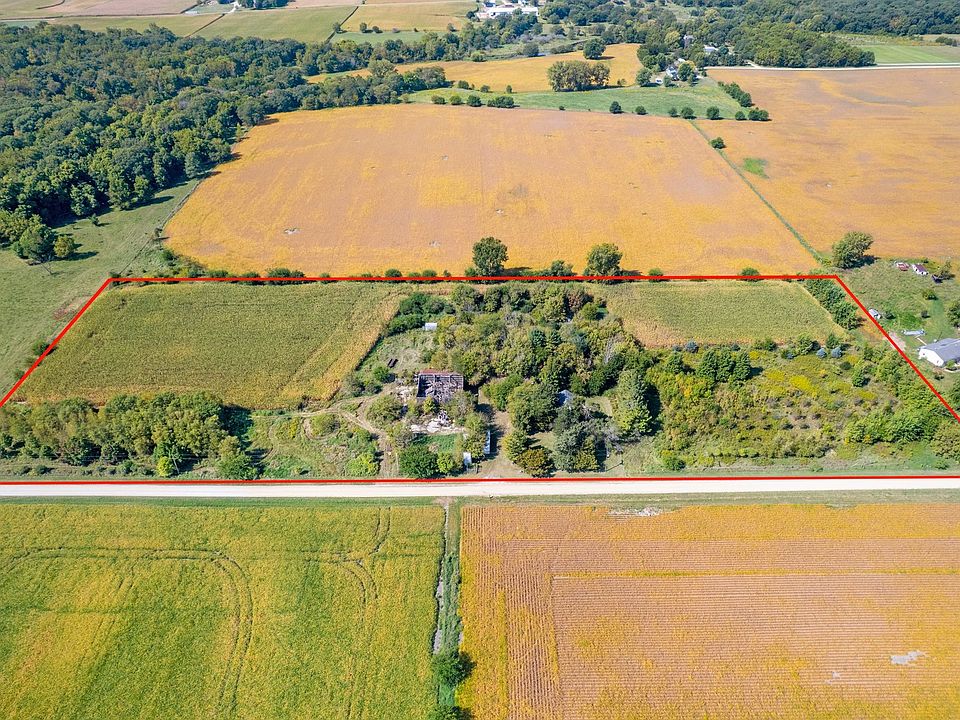 10.5 acres in a quiet and serene setting. Once a thriving farmstead and it still has the 1890's 2 bedroom farmhouse and a 20'x56' open front equipment shed. A tree shaded oasis waiting for your dream home. This would make an great location for that Barndominiom you have been dreaming about. Or rehab the existing house. There are several acres of crop ground being rented to a neighboring farmer. Zoned Ag so bring your animals out to this pretty piece of land. There are just so many options here, and with great proportions to the lot size. So get away from the hectic city life and relax!