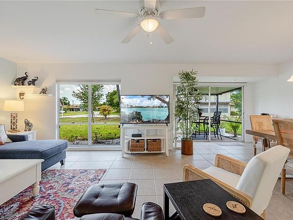 Super cute, 2-bedroom, 2-bath, single story townhouse located in Caloosa Bayview. You'll love the open living space flowing with natural light from the ground to ceiling windows. Split bedroom floor- plan offers privacy to visiting family or guests. Massive fenced-in courtyard porch area is perfect for grilling or enjoying the beautiful weather. The kitchen has been remodeled with granite countertops, modern cabinet hardware, and stainless-steel appliances. Both full bathrooms were gutted and remodeled and now have tastefully modern walk-in showers and vanities. Spend your morning enjoying a coffee, or evenings sipping a cocktail on the completely covered lanai with ceiling fan, where you can admire the nature and canal view, while soaking up the Southwest Florida lifestyle! Ammenities include a huge community pool, tennis courts, gym, and a community room with pool table, kitchen, library, and more! Sellers are open to conveying all the tasteful furniture to any buyers interested in purchasing a completely furnished unit! Caloosa Bayview is conveniently located off of McGregor close to downtown Ft Myers, Ft Myers Beach, Bell Tower Shops, and RSW International Airport.