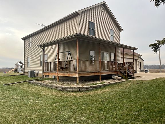 Prestine 5 Acre farmette 2 car attached garage.Enjoy a peaceful atmosphere on 6ftX40ft wraparound porch leading to a nice foyer and private office area. Spacious livingroom opens to a kitchen with many cabinets and roomy dining area. Convenient 1st floor 1/2 bath. Large mud room / laundry, also located on the 1st floor. 17X21 primary Bedroom features a sitting area, double closets and full bath. Other 2 bedrooms provide ample space with fitting full hall bath. Fenced in yard with playset 45X56 heated lester building features 25x14ft overhead door, 16ft ceilings,1/2 bath, office area with loft. Has its own septic. Many possibilities with this well kept building. Propane tank, work bench, air compressor and other personal items will not stay. Dont miss this great place! Zoned A1 bring your animals. A must see call for a private showing. Agent is related to seller.