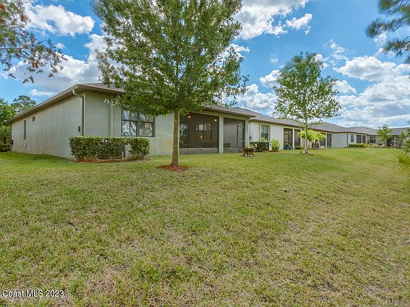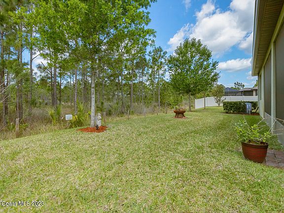 Beautifully landscaped 4BR/2BA home in West Melbourne is positioned between preserved land front & back. This home offers High ceilings & natural light highlight the open floorplan. Kitchen overlooks living/dining area & includes SS appliances, center island w/sink & large pantry. Owner's suite overlooks the lovely preserve & includes 2 nice sized walk-in closets, step-in shower w/seating, 2 sinks & a water closet. 2 guest bedrooms at front of house have bath & additional storage closets in between. 4th room ideal as bedroom or office. Separate laundry room includes cabinets & counter. Screened in patio is large enough for outdoor dining or just everyday relaxing. Amenities are ceiling fans throughout & access to community clubhouse, pool & workout space.