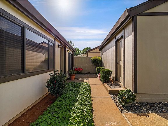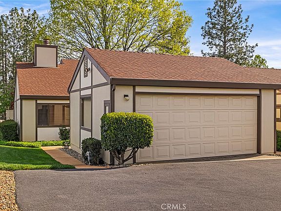 Welcome to the Stoneridge Townhouses in Paradise. Pride in ownership describes this community. Wonderful Pool and Clubhouse to entertain family and friends. This end unit offers nice privacy as only one wall is shared. The front courtyard welcomes you into the home. The living room has vaulted ceilings, newer carpet, fireplace with built in cabinets and shelves on either side. The living room opens to the dining room with a slider to the front courtyard. The kitchen overlooks the dining room with stainless sink, stainless Whirlpool refrigerator, microwave, updated electric oven/range, skylight and large walk-in pantry. Down the hallway is the spacious laundry room with plenty of cabinets, guest bathroom with solid surface vanity, 10X10 tiled floors, skylight, updated light fixture and a tub/shower combination. The primary bedroom has a private slider to the fenced back patio and walk in closet. The primary bath offers soldi surface vanity and a step-in shower. The guest bedroom also has its own slider to the back patio. The back patio has some wonderful mature Japanese Maples and since it's an end unit very private. The home also offers an oversized detached two car garage. New thermostat 2025. New Hot Water Heater 2025. All carpeted rooms were done in 2019. Added insulation to R-38 in 2019. The interior of the home was also painted in 2019. Updated Central furnace. This home has been well cared for and is ready for a new owner.