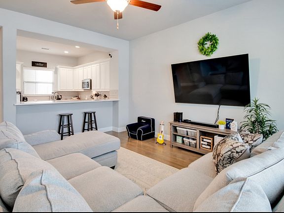 Tenant occupied until Oct 3. Gorgeous townhome located in the sought after Riverwalk community in Flower Mound. Situated on a beautiful tree lined street, you will fall in love with all this townhome has to offer. Beautiful wood floors flow through the living, kitchen & dining areas. Features includes decorative lighting, quartz counters, SS appliances and more. A perfect space for family gatherings & entertaining. All bedrooms are located upstairs along with a small living or extra space at top of stairs. The spacious primary bedroom features a large window and the ensuite bath includes a separate shower, garden tub, dual sinks & large walk-in closet. Two nice size secondary bedrooms, guest bath & the utility room are also located on the second level. Community amenities include walking & bike trails, a canal area with restaurants & entertainment, an events center & chapel. Centrally located between Dallas & Ft. Worth & close to DFW Airport.
