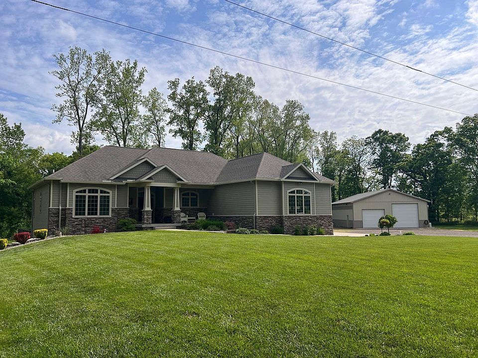Custom built home in 2016 with over 4000 finished square footage and too many upgrades to name them all! 5 bedrooms, 3 full baths, 3 car attached garage, plus a 40x50 pole barn with hoist and 14 foot side walls, Generac system, fenced yard, firepit with custom swings, extensive landscaping, woods and acreage for privacy and good hunting! Main level features beautiful hickory hardwood floors through-out, along with an open floor plan and soaring ceilings and a design that captures natural lighting in every room! Primary bedroom features tray ceilings, patio door that lead to covered deck, private bathroom with jetted tub and custom tiled shower, plus a spacious walk-in closet with direct access to the laundry room! There are (2) attached garages, with one that features direct access to the lower level that can be used as a private in-law apartment! Lower level features a finished family room area, full bath, 2 of the 5 bedrooms, second kitchen, second laundry area and theater room, complete with projector and screen that will stay! Must see this home to appreciate all of the extra’s this home has to offer! Morrice, Perry and Webberville busing is available at this home! See attached list of additional details in associated docs.