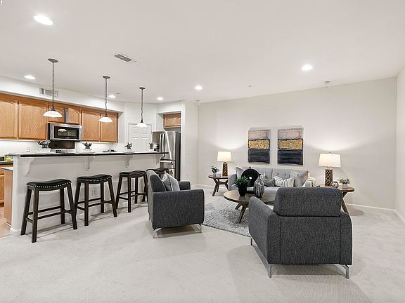 Move-in ready meticulously maintained condo offers resort lifestyle at The Courtyards Dublin Ranch Villages by Toll Brothers. Spacious great room featuring a family room/dining combo, high ceilings, gas fireplace and access to a large private balcony. Kitchen offers maple cabinetry, granite countertops, gas stove, breakfast bar, walk-in pantry and upgraded stainless steel appliances; built-in microwave, dishwasher, refrigerator. Warm and inviting color for the fresh new paint and newer Mohawk carpet. Main level bedroom has plenty of space to set up a work from home office with access to the second private balcony. Spacious master suite features double entry doors, ceiling fan and walk-in closet. Master bath with dual sinks and a large stall shower. Washer and dryer along with additional storage in the laundry room inside the unit. Convenient attached tandem 2 car garage. Amenities include community clubhouse, pool, spa and fitness room. Low HOA monthly fee of $316. Prime location near shopping, restaurants, golf, Kaiser, BART and 580/680. Walk to the new Emerald High School built in 2024. Enjoy Bray Commons Park with a fenced dog park, playground, basketball court and a large lawn area. Come experience this special home and start your new chapter in this wonderful community.