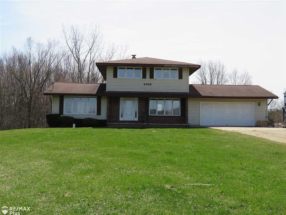 Nice 3 bedroom, 2.5 bath, 2 story home on 2 acre country setting! Nestled on rolling, hilltop overlooking private backyard. Spacious hickory kitchen w/5x6 pantry & appliances included. Large dining room. Spacious living room with glass sliders leading to 15x12 deck. First floor laundry (shares full bath). 2nd floor features 3 bedrooms & full bath. Lower Level daylight/ walkout site finished with family room and rec room plus 14x11 storage area and 1/2 bath. Furnace & Central Air approx. 8 yrs. Oversized (24x24) 2 car garage. Covered front porch (23x5) overlooks wooded area. Plenty of frontage for future pole barn. Great floor plan, awesome setting just in need of some cosmetic updates.