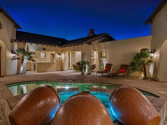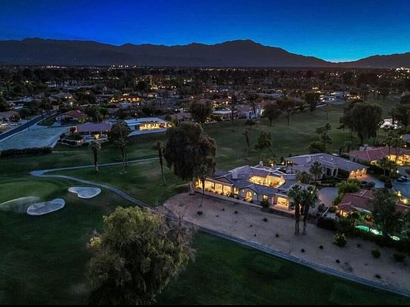 Welcome to Castle Harbor, an exclusive guard-gated enclave within the renowned Bermuda Dunes Country Club--home to just 31 custom residences offering privacy, prestige, and some of the best views in the community. This Tuscan-inspired estate captures the essence of desert luxury living, perfectly positioned on a premier corner lot overlooking the par-3 7th hole of the Classic Course with sweeping vistas of the Santa Rosa Mountains.Step through the handsome wooden gate into a serene courtyard retreat featuring a Pebble Tec pool and spa with cascading waterfalls, a granite outdoor kitchen with built-in BBQ and mini fridge, and a cozy fireplace seating area--ideal for entertaining under the stars. A long paver driveway leads to the three-car garage and provides a grand first impression of this meticulously designed residence.Inside, walls of glass in the expansive great room showcase panoramic golf and mountain views, complemented by a stunning stone fireplace and a dramatic entertainer's bar with wraparound windows. The gourmet kitchen is a chef's dream with GE Monogram stainless-steel appliances, granite countertops, a breakfast bar peninsula, walk-in pantry, and abundant cabinetry. A formal dining room and breakfast nook--each with gorgeous views--complete the perfect setting for gatherings large or small.The luxurious primary suite offers a tranquil sitting area with fireplace, dual cedar-lined walk-in closets, and a split double bath with separate vanities, water closets (one with bidet), and a private fitness or dressing room. Two additional guest bedrooms--one currently used as an office--are located within the main home, while a detached private casita with kitchenette provides ideal accommodations for visitors.Additional highlights include high ceilings, custom built-ins, a large laundry room with dog-wash station, and IID electric service for lower energy costs. Optional memberships are available at Bermuda Dunes Country Club, though not required, allowing flexibility in lifestyle.Conveniently located near the Acrisure Arena, world-class golf, tennis, pickleball, shopping, and dining--this stunning Castle Harbor estate offers the best of desert living with unmatched views, craftsmanship, and comfort.