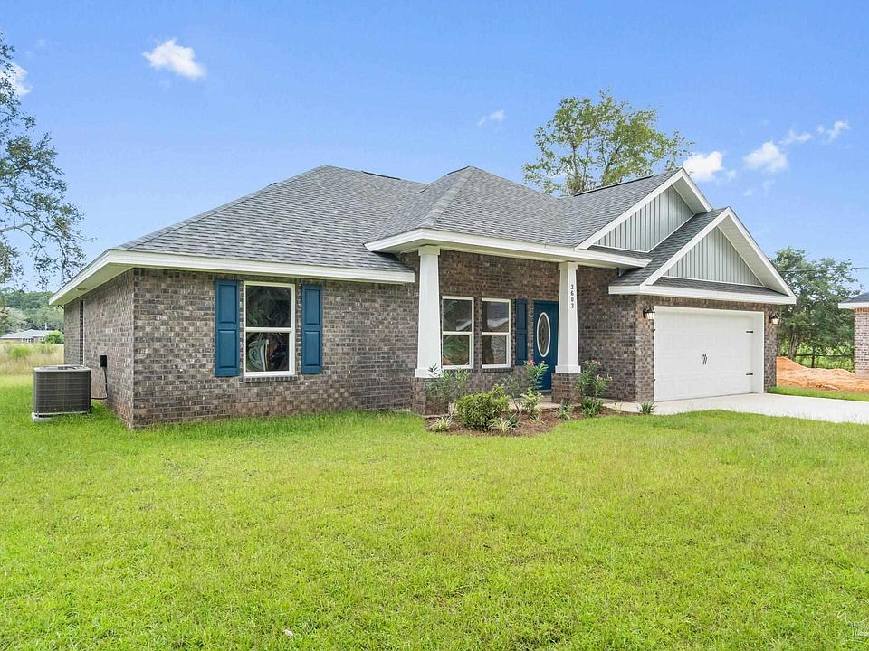 NEW CONSTRUCTION! NO HOA! Delight in premium features like Crown Molding, Blinds, and a backyard privacy fence, all included! Introducing the popular "Sunburst" plan, one of five stunning floorplans available in the "Breezy Meadows". This elegant 3-bedroom, 2-bath brick home features a spacious open-concept layout with a living room, dining room, and kitchen area, all lined with durable and stylish scratch/water-resistant Luxury Vinyl Plank Flooring. The kitchen is a chef's dream, equipped with stainless steel appliances, granite or Quartz countertops, a large island with bar seating, and solid wood soft-close cabinets/drawers, all accentuated by sleek brushed nickel hardware. The master suite offers a tranquil retreat, boasting trey ceilings and a luxurious bathroom with a garden tub/shower combo, double vanities, and an expansive walk-in closet. Located in the sought-after Breezy Meadows subdivision, south of I-10 and just off Hwy 87, this home provides quick access to both Navarre and Milton. Enjoy the best of coastal living with Navarre Beach only 20 minutes away. Are you ready to make Breezy Meadows your new home? Call today for additional details and take a virtual tour! Photos are of a similar home, so colors and selections may vary. Don’t miss out on this opportunity—schedule your visit now!