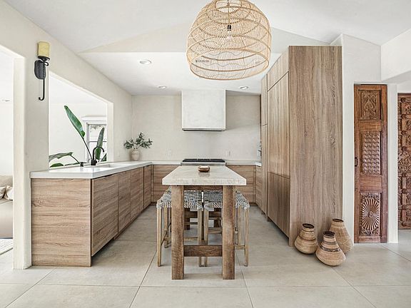 4267 Murietta Avenue is a meticulously crafted Mediterranean gem situated South of the Boulevard in Sherman Oaks. Fully furnished with bespoke pieces from local artisans worldwide, every corner of this residence exudes elegance. Step inside to discover a grand living room adorned with a fireplace, leading to a formal dining room and a sunken den. The thoughtfully designed kitchen boasts top-of-the-line appliances, a center island, and ample cabinetry, catering to culinary enthusiasts. The secluded primary suite features a private outdoor terrace overlooking the lush grounds, accompanied by a spacious walk-in closet. Two additional suites complete the main house, ensuring ample space for residents and guests alike. Beyond the interiors lies a sprawling backyard oasis, featuring a picturesque pool, verdant grassy area, and al fresco dining space illuminated by string lights. The spacious guest house has a chic pied-a-terre feel with a full kitchen, living area, and private bedroom and bath. Notable design elements such as a Moroccan Zellige tiled staircase, high ceilings with beam accents, Juliette balcony, lime wash walls, and a driveway equipped with an EV charger further enhance the charm of this private sanctuary.