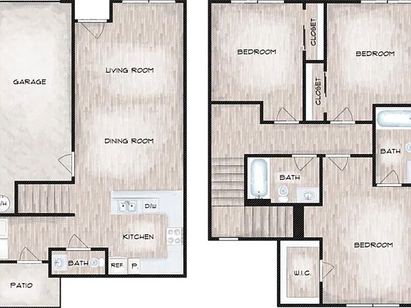 Expansive Three-Bedroom Townhome. Our largest floor plan features generous living areas, a private backyard, and plenty of storage. The attached garage and contemporary finishes make this the ultimate combination of space, style, and convenience.