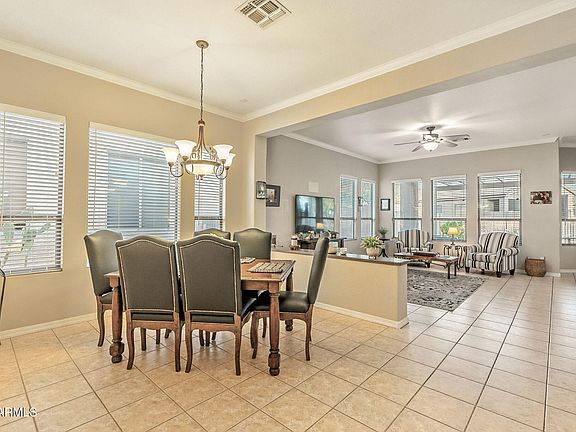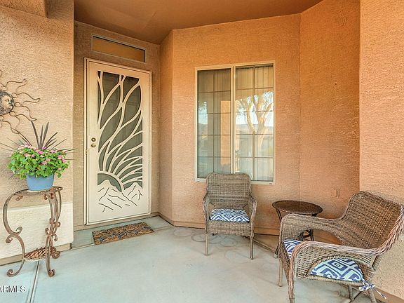 The back patio is extended and is covered with a beautiful pergola. The yard backs to an open arroyo to extend privacy and enjoy the wildlife. The pictures show how nicely it is decorated including a fire pit.