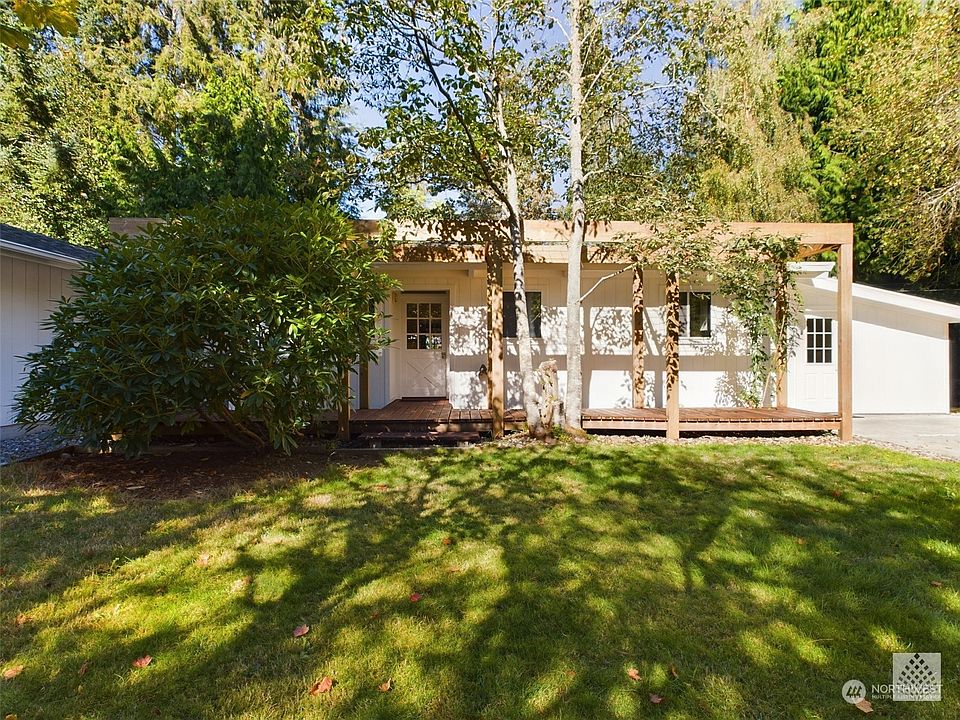Great location one mile from the city of Langley. Very private on lovely corner lot. Two driveways on the property. Can be a primary home or island vacation home. Newly painted exterior. Wooden ceilings in the living room give it a uniquely cozy atmosphere.
