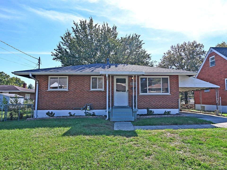 UPDATED RANCH for sale! Cute as can be with an open floorplan and a HUGE kitchen. Stainless appl. Brick construction, roof (24'), hardwood floors, fenced in yard, finished basement with family room, 2nd full bath and 3rd bedroom. Driveway and carport. Nothing to do but move right into this super cute neighborhood. Near shopping and restaurants.