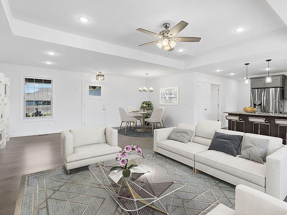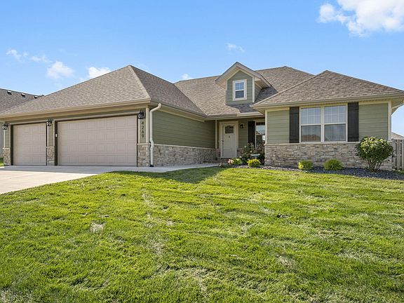 Gorgeous 2022 ranch home with premium upgrades! This 4-bedroom, 2-bath beauty spans 1,782 sq ft on a generously sized lot, offering modern comfort and style. Move-in ready with high-end finishes, this home is a must-see. Inside, enjoy an open-concept layout with crisp white walls and stunning wood floors throughout the kitchen and living areas. The gourmet kitchen features granite countertops and a gas range, ideal for cooking and hosting. Relax by the elegant stone fireplace in the living room or indulge in the luxurious master bath, complete with a custom tile shower, rain head, and tiled tub surround. Outside, the extended front porch, accompanied by fresh rock landscaping, sets a welcoming tone. The backyard is perfect for entertaining, boasting a covered deck with new composite boards, a large stamped concrete pad for BBQs or a future pergola, and a fully sodded yard with irrigation. A full privacy fence ensures peace, and a dedicated concrete pad keeps your trash bin shed out of sight. With a 3-car garage and a prime Ozark location, this like-new home offers incredible value. Don't wait--schedule your showing today!