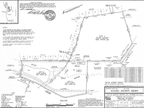 All data obtain from Seller, Tax Data & Inspection, Subject to Verification by Buyer(s) & Buyer's Agent. Part of Parcel ID 364909055685 of the GIS, Lot #3 Approximately 6.09 +/- Acres Survey Prepared by Honeycutt Land Surveying, Close to Downtown Newton, Conover, and the Maiden Area.