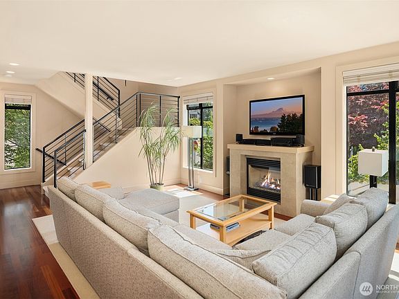 Nestled in Kirkland’s coveted Moss Bay, this end-unit townhome exudes luxury just steps from the lake, parks, Google, and vibrant downtown waterfront. Soaring ceilings, walls of windows, and two balconies showcase panoramic views of Lake WA, the Olympics, and lush garden lawn. Rich cherry floors and custom cabinetry define the chef’s kitchen, featuring top appliances and flowing seamlessly to dining + spacious living room with balcony—ideal for al fresco grilling. Upstairs, 2 en-suite beds await, including tranquil primary retreat with private balcony, fireplace, soaking tub, and walk-in closet. Flexible main-floor bonus w/ fireplace, wet bar, and full bath serves beautifully as 3rd bed/guest suite. Pre-inspected, turnkey, impeccable!