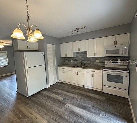Beautifully remodeled 2-bedroom, 1-bath duplex available for rent in Largo, conveniently located near Largo High School. This updated unit features luxury vinyl plank flooring throughout, a modern kitchen with wood cabinetry, granite and quartzite countertops, updated appliances, and a pantry closet. The bathroom has been fully renovated with a spacious walk-in shower, granite-topped vanity, and contemporary finishes. Enjoy the comfort of ceiling fans in both bedrooms and the living room, as well as blinds on all windows for added privacy. Sliding glass doors from the kitchen/dining area lead to a private, covered back porch perfect for relaxing outdoors. The unit also includes a private laundry room located in a secure storage area off the patio. Additional highlights include updated lighting, a partially fenced yard, a roof replaced in 2015, linen and storage closets, and ceiling fans on the porch. A truly move-in-ready home in a great location!
