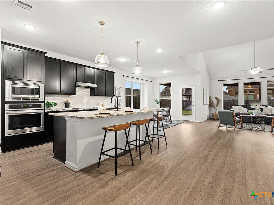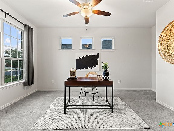 Welcome to this beautifully maintained two-story home on a spacious lot in the Hutto Highlands community. With 4 bedrooms, 3 bathrooms, and a thoughtfully designed open floor plan, this home offers comfortable and functional living space just minutes from local parks, schools, and restaurants. Step inside to find a light-filled living area with neutral finishes and durable wood-like flooring that continues throughout the main living spaces. The well-appointed office space is tucked just off the foyer, which leads to the open layout living area. The seamless design connects the dining area, kitchen, and living room, creating an easy flow for everyday living and entertaining. Whether you're hosting friends or enjoying a quiet evening in, this space is designed to make you feel right at home. The kitchen features granite countertops, stainless steel appliances, a large single-basin sink, and a walk-in pantry for extra storage. Just off the main living area, the private primary suite offers a peaceful retreat with a spacious bedroom, a walk-in closet, and an ensuite bath with a double vanity, a soaker tub, and a step-in shower. Three additional bedrooms are located upstairs, each with easy access to a shared full bathroom. An open upstairs living area can be used as a media room, home library, or play area depending on your needs. Out back, enjoy a fully fenced yard with plenty of space to enjoy beautiful Texas sunsets. The covered patio offers a shaded spot to relax with your morning coffee or unwind after a long day. The spacious lot provides added privacy and curb appeal. Hutto Highlands residents enjoy access to community amenities, including two neighborhood playgrounds, a sport court, and a splash pad. With easy access to Highway 79 and SH-130, commuting to Austin, Round Rock, or 15 minutes to Samsung in Taylor is simple and convenient. This inviting home is move-in ready and waiting for its next chapter. Come see it for yourself!