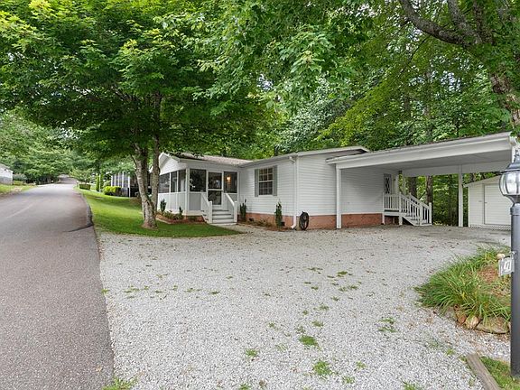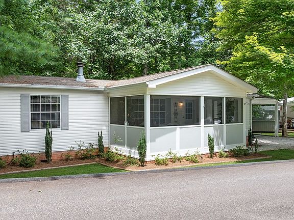 3 Bedroom 2 Bath manufactured home in Carolina Village . Easy access and paved to the door. There are beautiful mountain views from the screened in porch. Inside a fireplace for those chilly mountain nights as well as central heat and air to ensure you are comfortable year round. There are vaulted ceilings that give a spacious feel, a split bedroom plan that ensures privacy for you & guests. Open floor-plan with a very large kitchen w/ over-sized pantry & laundry adjacent to it. The Primary/Master has a large walk in closet. this home is situated on a wooded lot w/small side yard. This porch is a cozy spot to relax. The 2-car carport to keep you & your auto protected from the elements. There is a separate storage building for gardening tools etc. Carolina Village is a well-kept Community. It's Gated & the monthly fee includes city water, sewer, use of Clubhouse, Mowing & Maintenance of common areas, gated entrance, street lights. The roof was replaced in 2019 and there are some nice updates including microwave, dishwasher, granite counter tops, stove, refrigerator and paddle fans all installed in 2021.