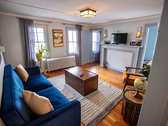 1860's charm with a landscaped garden, covered front porch and private detached garage in the heart of Hudson! This sun-filled, 2-family gem in the 400-block is currently a successful Airbnb, and just a stone's throw from all the excellent restaurants, shops, galleries and cafes on bustling Warren Street. Take an easy stroll around the corner, and you'll find the fully renovated and wonderfully reimagined Hudson Area Library (formerly the Hudson Armory, circa 1898) with its full brick exterior, 3-story front tower & 2-story, arched portico, and stately slate roof. 427 Carroll's first-floor unit is currently configured as a large 1-bed/1-bath, and the second-floor unit is a 2-bed/1-bath. The updated kitchens boast butcher block countertops and open shelving, white subway tile backsplashes, farmhouse sinks, and contemporary base cabinetry. The windowed bathrooms afford clawfoot tubs and white subway tile surrounds, along with updated sinks and toilets. Additional improvements include: refinished wood floors throughout...new high-efficiency, 2-zone, on-demand gas furnace and hot water heater...upgraded electric...and added insulation for increased energy efficiency. Foodies take note...you'll be thrilled to know that Spring, Summer & Fall every Saturday, the Hudson Farmer's Market comes alive affording a plethora of farm-to-table offerings from numerous local vendors just a short walk away on Columbia Street between 5th & 6th. Lastly, the Amtrak train station is conveniently located at the bottom of Warren on Front Street and allows for easy commuting to and from NYC. Here's your chance to grab your own little piece of Hudson!