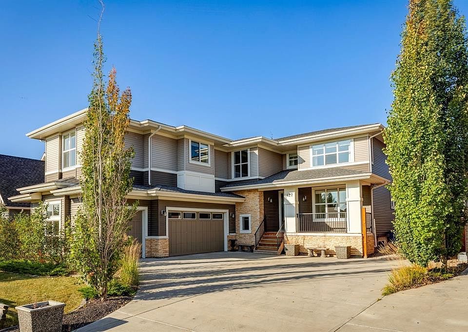 Welcome to 427 Canals Blvd SW, a stunning former show home that seamlessly blends luxury, functionality, and timeless design. Offered by the original owners, this immaculate property boasts every upgrade imaginable and has been meticulously cared for from day one. With 3,066 sq. ft. of beautifully designed living space on the upper levels, plus an expansive triple attached heated garage, this home delivers sophistication & comfort in every detail. From the moment you arrive, the curb appeal is undeniable. The professionally landscaped yard is enhanced by an underground sprinkler system, night lighting (soffit lighting as well) while the impressive stamped concrete patio with gas line hookup & included gazebo provides a private retreat for outdoor entertaining. Step inside and you're greeted with soaring ceilings and an open, light filled layout that showcases the craftsmanship and thoughtful design throughout. The main floor is both elegant and practical, featuring a dedicated office for those who work from home, custom built-ins for added style and storage, and a chef's dream kitchen with quartz countertops, premium appliances, abundant cabinetry & a walk-through pantry. The spacious great room invites relaxation with its warm, welcoming ambiance, while the dining area flows seamlessly to the outdoor patio for effortless indoor-outdoor living. Upstairs, you'll find four generously sized bedrooms, including a luxurious primary suite with a spa-like en suite retreat--complete with a deep soaker tub, oversized shower, dual sinks, and designer finishes. A massive bonus room offers the perfect space for family movie nights, games, or a quiet escape. The triple attached heated garage is a showpiece of its own, featuring epoxy floors and custom storage solutions that reflect the same pride of ownership seen throughout the home. Extended curved driveway and RV Parking just add that extra separation for loads of parking. Central vacuum, 8' interior doors, Built-in computer station in the kids wing upstairs, A/C, concrete curbing, cedar split rail fence and countless high-end upgrades, you have a residence that truly checks every box. Set in the highly desirable Canals community, this property offers the perfect balance of tranquility and convenience, with schools, shopping, parks, and canal pathways all nearby. Rarely does a home of this caliber, in such pristine condition, come to market. Don't miss your chance to make this former show home masterpiece your very own!