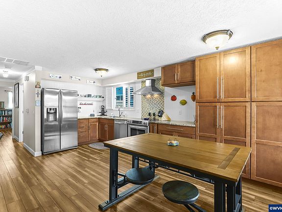 This updated 2 bed home in the Woodburn Senior Estates boasts beautiful waterproof flooring throughout, a remodeled kitchen with stainless appliances, induction range, and soft close cabinetry with pull-out shelving. Plus, the expansive garage offers ample space, perfect for parking a golf cart, setting up a home gym, or more. The permitted bonus room off the garage adds even more flexibility. Outside, enjoy a fully fenced yard, breezeway, and covered patio, ideal for relaxing or entertaining.