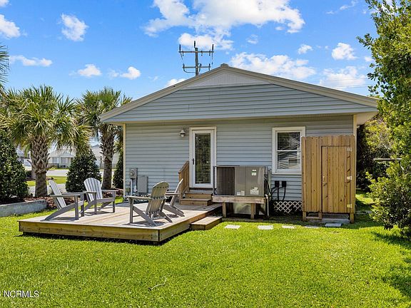 This quaint, recently updated (2021) open floor plan, two-bedroom beach cottage is now available! The great room has been completely gutted and renovated to include new insulation, flooring, beadboard ceiling, electrical and fixtures. The kitchen portion of the room has new quartz countertops, tile backsplash, cabinets and hardware, refrigerator, and stackable washer/dryer. Sellers added a large deck and outdoor shower in the backyard. Plumbing updated and new toilet installed in the Jack-n-Jill bathroom. This property has a great rental history from Airbnb, so it may pay for itself! Other features include: SmartTV, queen beds, Adirondack chairs on back deck. Many restaurants, shops, and public beach acess are a short walk or bike ride away. Wonderful vacation or investment property in the heart of the Crystal Coast! Limited showing opportunities due to rentals.