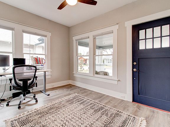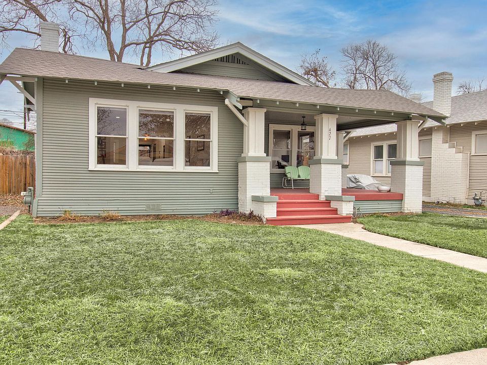 This charming 1922 single-story craftsman is located on historic East French Place, within walking distance to the Pearl. Original glass windows throughout the home allow natural light to flood into every room. Enjoy the ambience while sipping coffee and relaxing by the fireplace, situated between the original built-in bookshelves. The open living room flows naturally into the dining area, then into the newly remodeled kitchen. Kitchen amenities include an oversized island, white quartz countertops, a single-basin sink, stainless-steel appliances, and a built-in 18-bottle wine fridge. This is a chef's dream kitchen with plenty of prep space, storage, and a gas range.