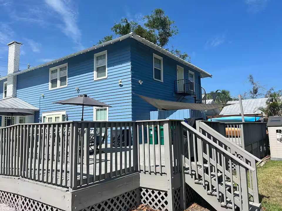 We have 5 rooms available for monthly rentals, 4 rooms upstairs and 1 downstairs. In addition to the large shared spaces downstairs we have a large delightful outdoor space with a large deck perfect for lounging, having a meal outside, and enjoying Florida's beautiful weather! We also offer grills and a cook table for your use. City occupancy limits only two people to one bedroom and a child counts a 1.