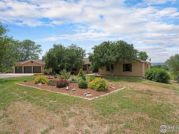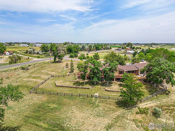 Sweeping Snow-Capped Mountain Views from this 4.47-acre lot. Whether sitting inside the home or standing on the expansive full-length deck the views of Longs and Meeker Peaks are astounding. This ranch style home with walkout lower level. Large multi-use kitchen includes breakfast nook and den area with fireplace. SS appliances, double ovens and big island with gas range. Main level also features sizeable primary suite, great room with fireplace, 2 additional bedrooms, bathroom, laundry and formal dining room. The walkout lower-level features family room, rec room with wet bar, theater room, bedroom, full bath and multiple flex and storage areas. Large, enclosed breezeway connecting the 1189 SF garage to the home. Aside from the expansive deck with amazing views, there is a detached 864 SF outbuilding, tennis court that can accommodate 2 pickle ball courts (could use resurfacing work) fenced yard and enough acreage to enjoy the space and privacy this property offers. This is a property that you really need to visit in person so set up your showing today!