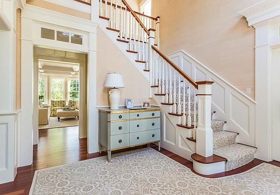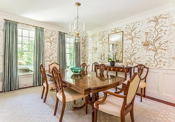 Private setting enhances the beauty of this well built and sumptuously finished home. The striking entrance includes Phillip Jeffries Raffia grasscloth wall coverings, a view through to the sun-filled living room and dining room featuring Brunschwig & Fils wallpaper. The front and back staircases and upper hallway graced with custom designed Hokanson hand tufted wool carpet. No expense spared in interior finishes, including Farrow & Ball paint, custom designer built-ins that create a stunningly elegant and comfortable family home. All 5 bedrooms ensuite, large Master Suite with sitting room, large Master Bath and dressing rooms, Kitchen perfect with new Wolf dual fuel range, Subzero Pro 48 refrigerator, breakfast nook, and stylish seating area. Inviting office/guest suite with Holland & Sherry wool flannel wallpaper. Large family room in lower level with FP and half bath. Porches, patios, professional landscaping, new sports court and security system complete this masterpiece of a home