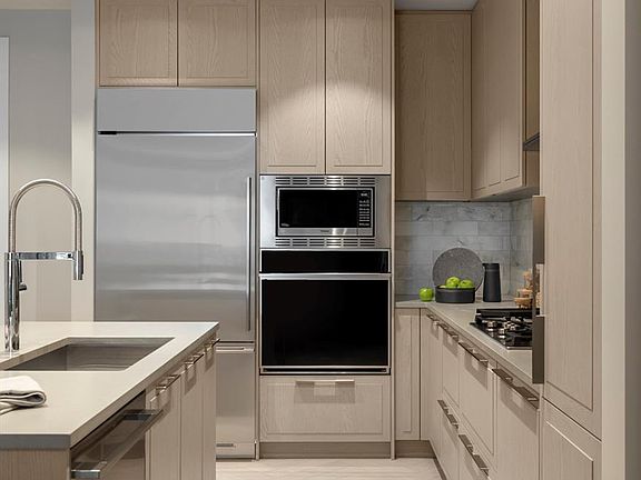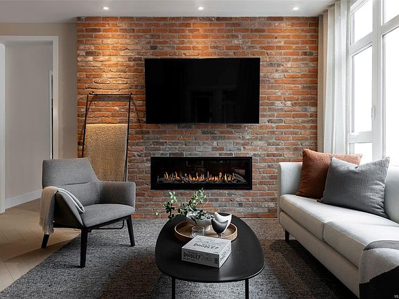 Herringbone-patterned engineered oak flooringAmple storageChef-inspired kitchenItalian ash cabinetrySpa-like bathroomSoaker tubLocally-sourced brick feature wall