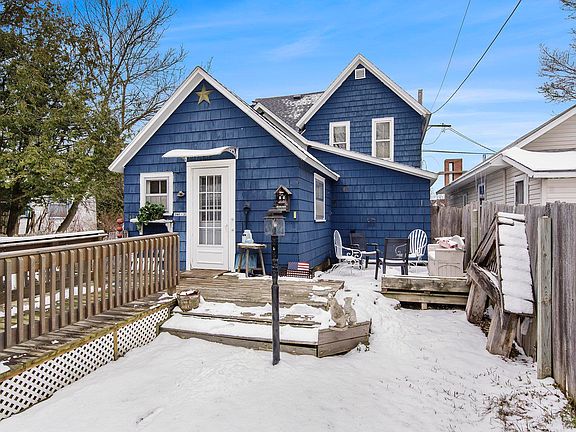 Start out with some equity! Appraised at $330,000! Welcome to your slice of paradise in the heart of Petoskey! This charming 2 bed, 2 bath home boasts an unbeatable location with waterviews from the main upstairs bedroom. Situated within walking distance to the picturesque Bayfront Park on Little Traverse Bay, spanning over 25 acres of natural beauty, this home offers the quintessential waterfront lifestyle. Step inside to discover 1448 square feet of living space adorned with beautiful hardwood floors throughout, exuding warmth and character at every turn. The layout creates an inviting atmosphere, perfect for both relaxing evenings and entertaining guests. The fully enclosed front porch provides a tranquil space to unwind, while a large deck in the back offers a private retreat for outdoor gatherings and summer BBQs. This home sits on an extra-large city lot, spanning over 1/3 of an acre, providing ample space for outdoor activities and gardening enthusiasts. The side yard adds value to the charm and versatility of this property. Convenience meets functionality with a two-car garage accessible via a boardwalk from the alley garage to the house, ensuring easy parking and storage solutions. Located in the vibrant city of Petoskey, renowned for its historic charm and vibrant community, this home offers the perfect blend of tranquility and urban amenities. Explore the quaint downtown area, indulge in local dining experiences, or embark on outdoor adventures along the picturesque bay—there's something for everyone to enjoy. *Most of the furnishings and what you see in the home will be included in the sale. not the butcher block, microwave and toaster. **Opportunity for growth. An addition can be added up to 600 sq ft. An apartment can be added over the garage. An additional two parking spaces can be added as well.