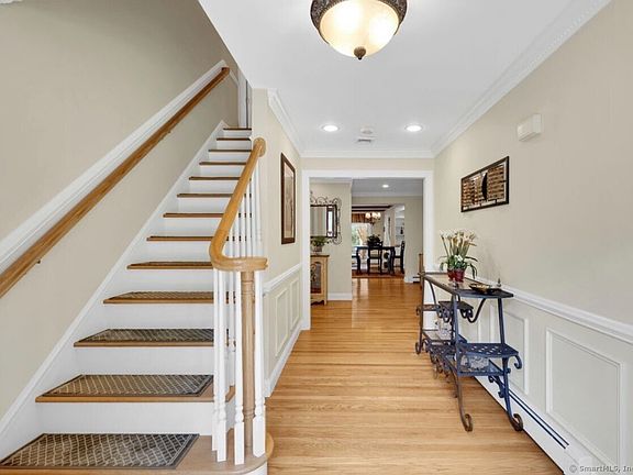 Experience luxury living in Merryall Section of New Milford, just 8 minutes from the historic New Milford Green. Ideally situated only 15 minutes to Metro-North, Kent, Sherman, and the scenic Litchfield Hills, this elegant Colonial home blends convenience, comfort and timeless charm. The elegant 4- Bedroom, 4.5 bath Colonial offers nearly 4,848 square feet of refined living space, set on a beautifully landscaped level corner lot. The heart of the home features a stunning open concept kitchen, a large center island, custom built-in cabinetry, generous dining space, a butler's pantry, 6' coat closet, and ample storage. Wide 6' openings connect living spaces to enhance natural flow. Additional main floor highlights; a cozy den with a pellet stove, formal dining room, an office, a main level mud room/laundry, and a bright four-season sunroom overlooking the landscaped back yard. On the second level, you will find four bedrooms, including two luxuriious suits. The Primary suite boasts a California closet, private laundry, a spa-inspired bath featuring a soaking tub, oversized shower, a towel warmer, bidet, and radiant heated floors. The second suite offers and additional room ideal for a study/media area, full bath, and generous closet space. Two additional bedrooms share a full bath and one bedroom offers access to a full walk-up attic. The finished lower level with private entrance offers flexible living space, including an office with plumbing, full bath, living-room and gym UPDATES * 2025 New Anderson Windows (Including Garage) * 2023 New Front Door * 2022 New 50 Gallon Water Heater * 2022 New Water Softener/UV Light Filter * 2022 New Oil Tank * 2021 New Furnace * 2021 New Generator * 2020 New Well Pump *2006 A 1,200 Square ft Addition; Kitchen, Living Room, Sunroom, Bedroom Suites; Adding 2-Zone Central Air and Updating to an 8-Zone Heating System
