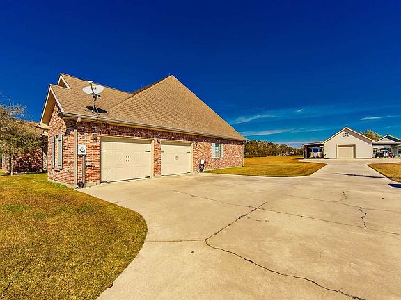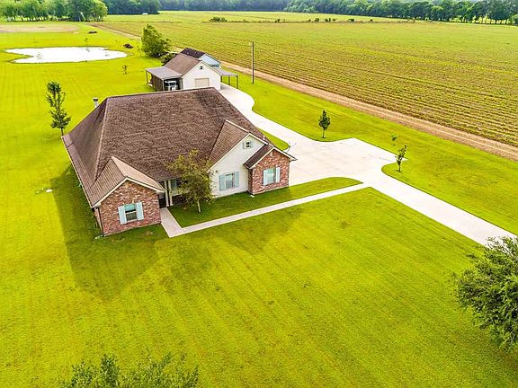 Beautiful home with 6.3 acres with stocked fish pond and a gorgeous 2 bedroom guest home and workshop that is 1,000 sq feet with attached covered area to store an RV and separate covered area to store a boat! 9 Beautiful live oaks adorn the front of the home. 9 and 10 ft ceilings in main home. All porcelain floors featuring 17 x 17 inch tiles. Wood floors as well. Kitchen features quartz countertops and stove is gas professional series frigidare with dual fuel (electric oven). Gas log fireplace which is convertible to wood burning. Crown molding throughout. Large double garage. Operable Spanish cedar shutters. All vinyl double insulated windows. 1 & 1/2 year old 17 seer carrier AC unit with all metal ductwork. Whole house water filtration system. 30 year architectural fiberglass shingles. 2x 6 exterior walls. Well insulated. Low electrical bills! In a no flood zone! Guest home is rented for 800 per month. 400 sq ft to store RV or boat. Spectacular home and property! Call today11