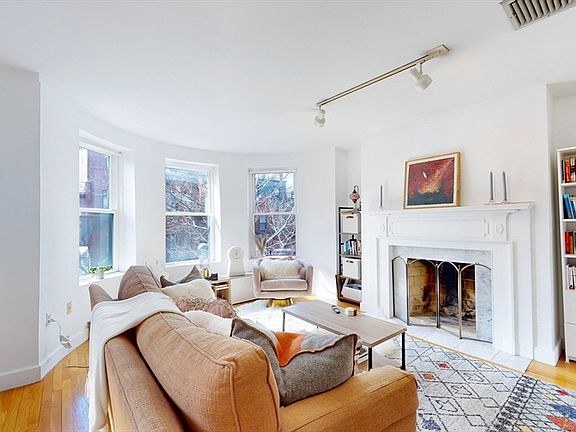 Set amidst the captivating allure of Marlborough Street, this sunny two-bedroom apartment exudes timeless charm and cozy ambiance. Upon entry, curved windows welcome graceful light, while an exquisite marble fireplace commands attention, adding grandeur to the living space. The compact yet charming kitchen inspires culinary creativity. Bedrooms offer serene retreats. Across the street, a deeded parking spot adds coveted convenience. Positioned in Back Bay, residents enjoy easy access to shops, eateries, and transport hubs, epitomizing Boston living. First showing on Saturday April 27th 12-1:30pm. No Undergrads allowed per condo docs. *Mailing address is 427 Marlborough Unit 7/ Legal address 427 Marlborough Unit 4.