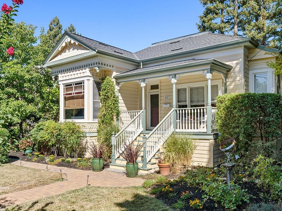 This enchanting Queen Anne Cottage Style home offers a captivating escape just moments from the Heart of Downtown Healdsburg. Nestled on a large .275 acre lot with approx 2038 sqft, this home has 3 bedrooms, 2.5 bathrooms with a light filled cozy parlor and a 420 sqft detached garage. (possible ADU?) Plus an added bonus--a Gorgeous French Inspired 2000 bottle custom built Wine Cellar! This historic home seamlessly blends classic features with modern upgrades. Highlights include the beautiful craftmanship of the detailed exterior woodwork, the warmth of the modern fireplace with antique wood mantle, stained glass window details with tall ceilings throughout. Enjoy the spacious Chef's Kitchen with high-end Wolf stainless steel cooktop and ovens, abundant storage with an island for extra prep space and seating. Imagine preparing your delicious farm to table recipes with fresh organic ingredients from your garden. Stroll to the wine cellar to select a nice bottle for your special guests. This wonderful property enjoys close proximity to fine dining at Michelin star restaurants, World famous wine tasting, fantastic boutiques and art galleries for one of a kind gifts. Enjoy Memorial Beach for swimming and kayaking with great breweries and music venues close by for your enjoyment.
